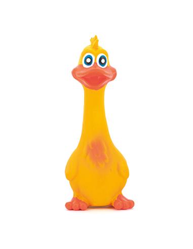 Podłużna zabawka w kształcie kaczki, z żółtego lateksu. Gwarantowana rozrywka, podczas gdy pies ćwiczy i odpoczywa. Z dźwiękiem po naciśnięciu. Pomiar: 19 cm