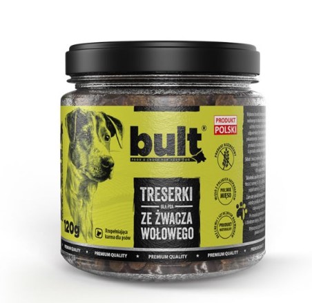 Treserki ze żwacza wołowego marki BULT to wyjście naprzeciw oczekiwaniom klientów co do atrakcyjnej, naturalnej i zachęcającej treserki na spacer lub aktywny trening. Wspaniałe właściwości żwacza zarówno w sferze atrakcyjności i zachęty do jedzenia w połączeniu z naturalnym doborem składników sprawią, że Twój pies pokocha treningi z nimi.